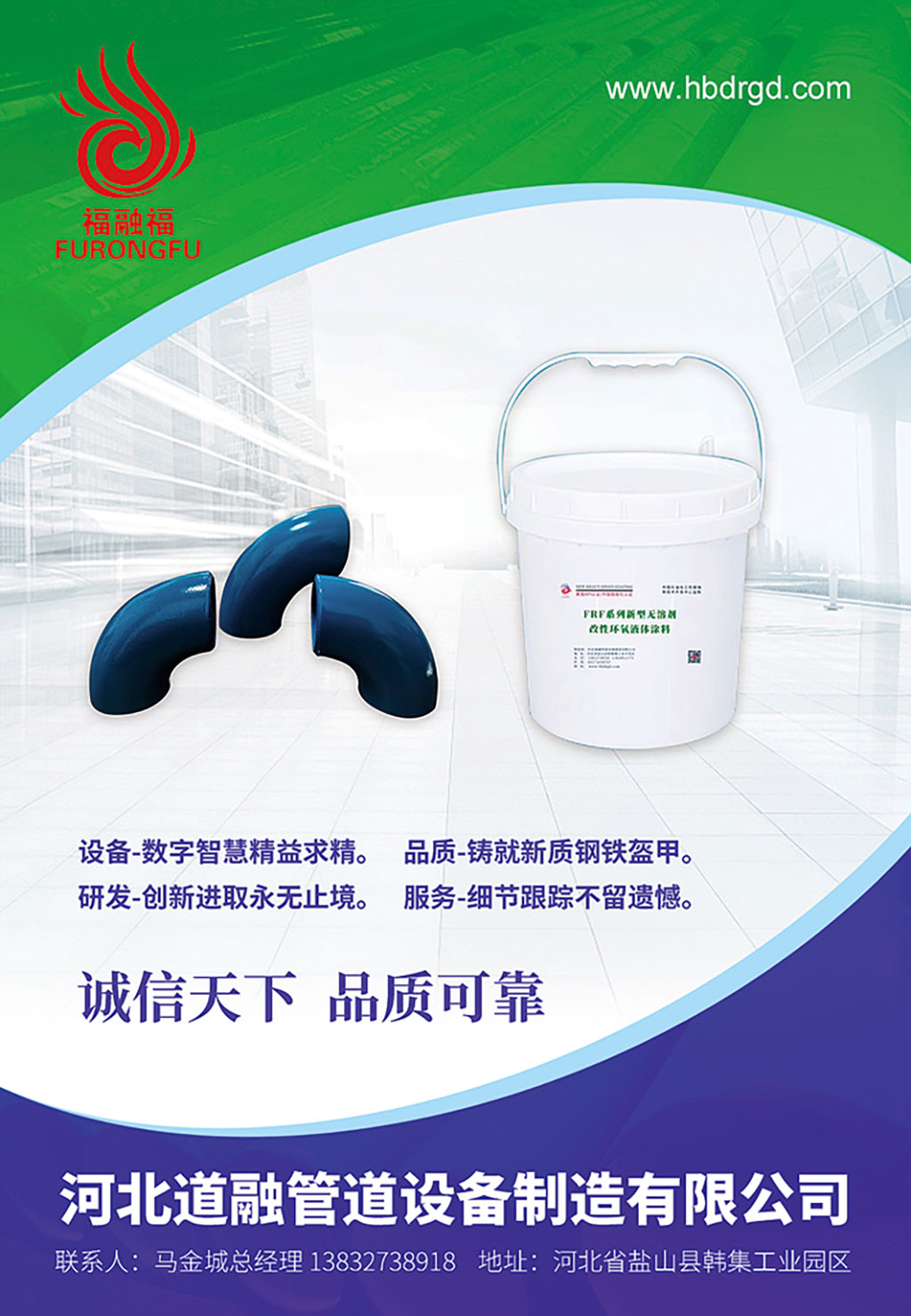 鹽山縣特色產業(yè)以管道管件配管、防腐、保溫為主,占國內市場的份額比重大,涉足領域廣,如化工、電力、燃氣、船舶、熱力、海洋、橋梁、鋼結構、城市管廊、光伏支架等。所有的這一切都需要防腐,一防腐蝕,二防紫外線。以前都是傳統(tǒng)的油漆處理,及普通的環(huán)氧樹脂粉末噴涂。其效果一不環(huán)保,二壽命短,嚴重浪費了資金的使用效率。重度環(huán)氧樹脂高分子粉末與改性無熔劑液體涂料,是未來工業(yè)新質生產力的主打產品。特別是工廠預制化占比比重逐年遞增,為現(xiàn)場施工安裝節(jié)約了時間,節(jié)約了大量人力、物力。河北道融公司以生產重度防腐材料與工廠自動智能化噴涂相結合,可實現(xiàn)雙重利潤收獲,使利潤得以更大化,市場更優(yōu)化,業(yè)務領域范圍廣泛化、拓展化,是未來環(huán)保綠色科技革命化,是新質生產力轉型升級的方向。