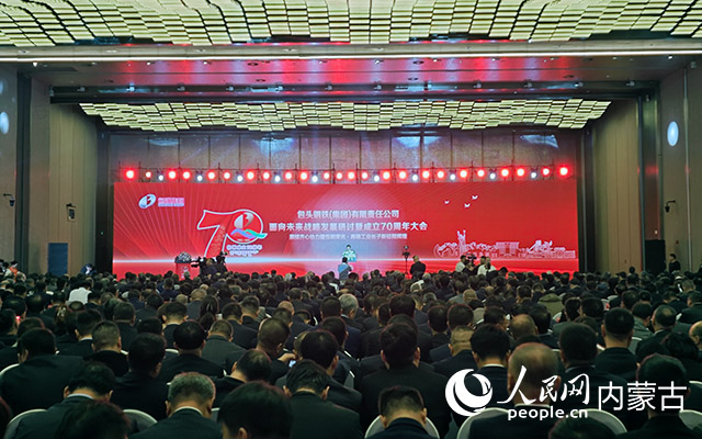 包頭鋼鐵(集團(tuán))有限責(zé)任公司面向未來戰(zhàn)略發(fā)展研討暨成立70周年大會現(xiàn)場。人民網(wǎng)記者 劉藝琳攝
