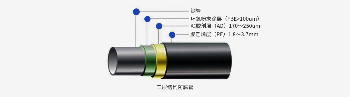 ●3PE防腐鋼管的涂層是底層與鋼管面所接觸的是環(huán)氧粉末防腐涂層,中間層為帶有分支結(jié)構(gòu)功能團的共聚粘合劑。面層為高密度聚乙烯防腐涂層。