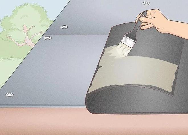 抓住防水填縫劑,在屋頂邊緣(排水溝所在的地方)畫一條細(xì)線。抓住橡塑屋頂突出的邊緣,并將其平滑到填縫劑上。用力按壓橡塑,然后讓填縫劑凝固幾分鐘。
