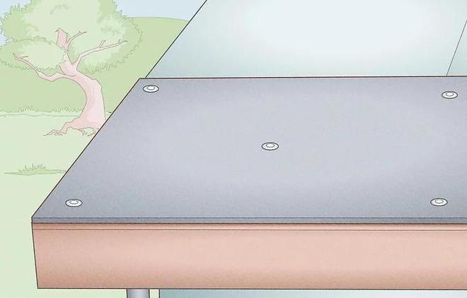 在屋頂甲板上安裝隔熱板。這將有助于讓您的家保持夏季涼爽、冬季溫暖。將1.2 x 2.4 m的隔熱板鋪開,使其覆蓋整個(gè)屋頂,并在整個(gè)屋頂周圍形成15cm的周長(zhǎng)。使用 4 個(gè)金屬緊固件和螺釘(板的每個(gè)角各一個(gè))將板固定到屋頂上。