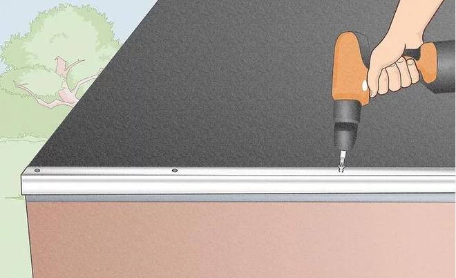 從當(dāng)?shù)氐奈褰鸬曩?gòu)買鋁制接線條,然后將其固定在屋頂?shù)奶羁p邊緣上。使用螺釘和鉆頭將桿固定在橡塑上,間隔約2.5cm,或者固定在桿有孔的任何位置。
