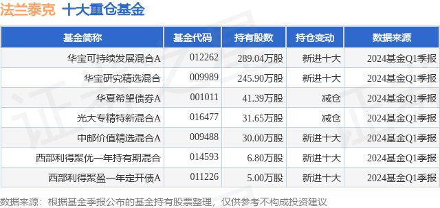 根據(jù)2024基金Q1季報(bào)公募基金重倉股數(shù)據(jù),重倉該股的公募基金共7家,金年會(huì)其中持有數(shù)量最多的公募基金為華寶可持續(xù)發(fā)展混合A。華寶可持續(xù)發(fā)展混合A目前規(guī)模為5.1億元,最新凈值0.7313(6月5日),較上一交易日下跌0.95%,近一年下跌15.53%。該公募基金現(xiàn)任基金經(jīng)理為賀喆。賀喆在任的基金產(chǎn)品包括:華寶制造股票,管理時(shí)間為2018年8月24日至今,期間收益率為71.61%;華寶研究精選混合,管理時(shí)間為2021年12月21日至今,期間收益率為-32.76%;華寶遠(yuǎn)景混合A,管理時(shí)間為2024年3月25日至今,期間收益率為nan%。