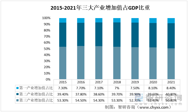 無縫管主要應(yīng)用廣泛應(yīng)用于石油化工、天然氣、電力設(shè)備制造等行業(yè),屬于第二產(chǎn)業(yè)??梢钥吹降诙a(chǎn)業(yè)占GDP的比重一直處在一個(gè)較高的水平,基本維持在40%附近。第二產(chǎn)業(yè)的蓬勃發(fā)展為無縫管的應(yīng)用帶來了寬松的經(jīng)濟(jì)環(huán)境。