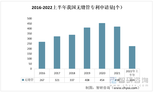 工業(yè)用不銹鋼管行業(yè)屬于技術(shù)密集型。一方面,隨著超級(jí)雙相鋼、鎳基合金、耐腐蝕耐高溫合金等新型材料的發(fā)展,不銹鋼深加工面臨越來越高的技術(shù)要求;另一方面,石油、化工、天然氣、電力設(shè)備等下游行業(yè)對(duì)工業(yè)用不銹鋼管的材質(zhì)、長度、外徑、壁厚、質(zhì)量、耐蝕性等方面的要求趨于多樣化,使得不銹鋼管的差異化應(yīng)用越來越明顯。金年會(huì)金字招牌信譽(yù)至上由于我國早已經(jīng)是不銹鋼生產(chǎn)大國,相關(guān)企業(yè)一直試圖在技術(shù)上進(jìn)行更加多樣化的創(chuàng)新已滿足市場需求。無縫管相關(guān)專利申請(qǐng)量一直處于一個(gè)增長的趨勢(shì)中,2021年,我國無縫管專利申請(qǐng)量為418個(gè),2022年上半年,我國無縫管專利申請(qǐng)量為224個(gè)。