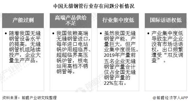 經(jīng)歷了數(shù)十年的發(fā)展,我國已經(jīng)成為了全球最大的無縫鋼管生產(chǎn)國。但與此同時,我國無縫鋼管行業(yè)也逐漸暴露出了一些問題,如產(chǎn)能過剩、高端產(chǎn)品供給不足、行業(yè)集中度低、國際話語權(quán)低等,這也是我國鋼鐵工業(yè)存在的主要問題。