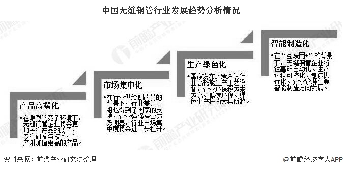 總的來看,我國無縫鋼管行業(yè)在轉(zhuǎn)型升級階段已經(jīng)取得了一定的成效,但離成為全球無縫鋼管生產(chǎn)強(qiáng)國仍有一定的距離,我國無縫鋼管企業(yè)仍需努力。在供給側(cè)的改革背景下,企業(yè)應(yīng)當(dāng)堅持摒棄以量取勝的發(fā)展道路,而更應(yīng)關(guān)注產(chǎn)品的附加值,打造高質(zhì)量產(chǎn)品。前瞻認(rèn)為,金年會在未來的發(fā)展趨勢上,我國無縫鋼管行業(yè)將往產(chǎn)品高端化、市場集中化、生產(chǎn)綠色化和智能制造化等方向發(fā)展。