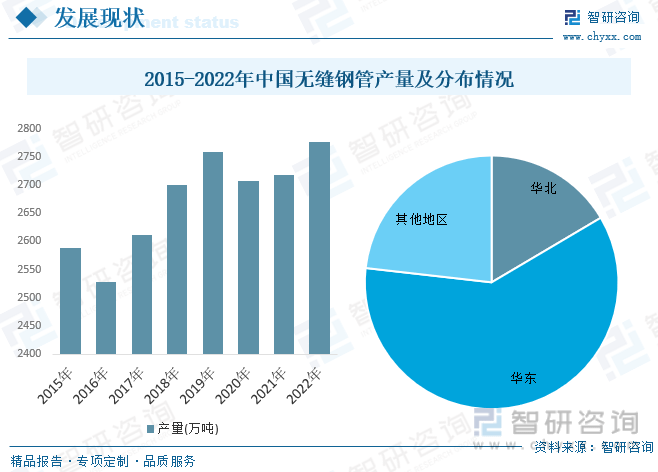 金年會(huì)官網(wǎng)平臺(tái)app一文深度了解2023年中國無縫鋼管行業(yè)市場(chǎng)規(guī)模及未來前景趨勢(shì)——智研咨詢發(fā)布2022年我國無縫鋼管產(chǎn)量約為2776.2萬噸,同比增長(zhǎng)2.12%,受我國無縫鋼管生產(chǎn)線區(qū)域布局的影響,我國無縫鋼管生產(chǎn)主要集中在華東地區(qū),2022年區(qū)域產(chǎn)量占比約為60.3%;華北地區(qū)產(chǎn)量比重為16.5%;此外中南地區(qū)亦是我國主要的無縫鋼管市場(chǎng)區(qū)域之一,整體而言,西南及西北地區(qū)產(chǎn)量份額較小。