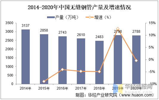 我國(guó)是全球最大的鋼管生產(chǎn)國(guó)。據(jù)統(tǒng)計(jì),2020年全國(guó)鋼管產(chǎn)量為8954.27萬(wàn)噸,同比增長(zhǎng)3.73%,其中,無(wú)縫鋼管產(chǎn)能為4200萬(wàn)噸,產(chǎn)量為2787.7萬(wàn)噸,產(chǎn)量同比下降0.11%,對(duì)應(yīng)產(chǎn)能利用率為66.37%。