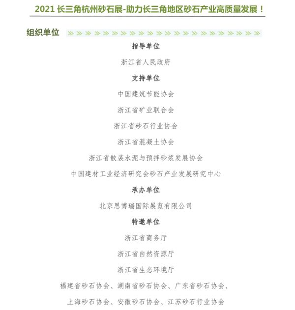 jinnianhui金年會(huì)官網(wǎng)李鬼來了!砂石骨料網(wǎng)關(guān)于某些會(huì)展不實(shí)宣傳的嚴(yán)正聲明近日,有不少砂石裝備企業(yè)致電砂石骨料網(wǎng)咨詢情況,我司也了解到有消息稱,2021年11月24日-26日,“2021長(zhǎng)三角(杭州)國(guó)際砂石與尾礦及建筑固廢技術(shù)處理裝備展覽會(huì)”將在浙江杭州國(guó)際博覽中心召開。展會(huì)宣傳表示,金年會(huì)官方網(wǎng)站入口中國(guó)建筑節(jié)能協(xié)會(huì)、浙江省礦業(yè)聯(lián)合會(huì)、浙江省砂石行業(yè)協(xié)會(huì)、浙江省混凝土協(xié)會(huì)、浙江省散裝水泥與預(yù)拌砂漿發(fā)展協(xié)會(huì)、中國(guó)建材工業(yè)經(jīng)濟(jì)研究會(huì)砂石產(chǎn)業(yè)發(fā)展研究中心等均為其支持單位。