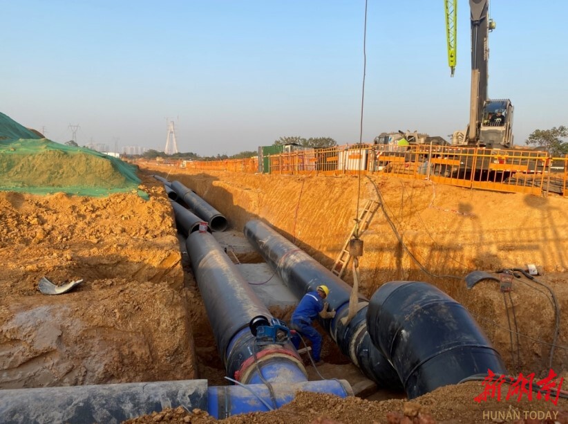 在望城區(qū)大澤湖片區(qū)淺層地?zé)犴?xiàng)目建設(shè)現(xiàn)場,天卓管業(yè)正全力組織機(jī)械和人力,進(jìn)行管道組對和焊接,在確保工程質(zhì)量的前提下,快速有序地推進(jìn)項(xiàng)目建設(shè)。